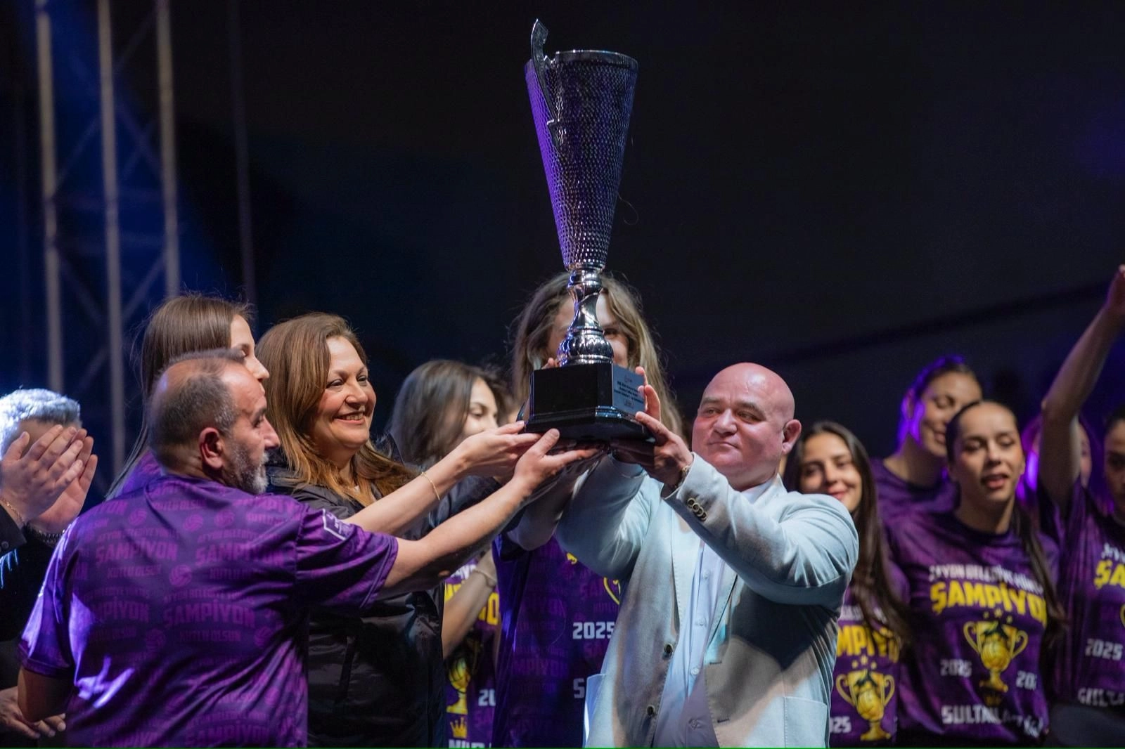 ŞAMPİYONLARIMIZ İÇİN GÖRKEMLİ KUTLAMA GERÇEKLEŞTİRİLDİ Afyonkarahisar Belediyesi Yüntaş Kadın Voleybol Takımı’mızın şampiyonluğu ve Sultanlar Ligi’ne yükselmesi dolayısıyla düzenlenen kutlama programı, Veysel Eroğlu Spor Salonu’nda büyük bir katılımla gerçekleştirildi. Belediye Başkanımız Burcu Köksal’ın öncülüğünde düzenlenen programda, şehrin gururu “Zaferin Sultanları” binlerce vatandaşın katılımıyla coşku içerisinde karşılandı. ŞAMPİYONLARIMIZA YOĞUN İLGİ Program kapsamında sporcular ve teknik ekip sahneye davet edilerek vatandaşlarımızla buluşturuldu. Şampiyonluk kupası yeniden kaldırılırken, salonda büyük bir coşku yaşandı. Kutlama programında vatandaşlar, “Şampiyon Zaferin Sultanları” tezahüratlarıyla takıma destek verirken, organizasyon boyunca birlik ve beraberlik mesajları ön plana çıktı. Afyonkarahisar Belediyesi Yüntaş Kadın Voleybol Takımı, elde ettiği şampiyonlukla Sultanlar Ligi’ne yükselerek şehir spor tarihinde önemli bir başarıya imza attı. SİZLER BU ŞEHRİN GURURUSUNUZ Kadın Voleybol Takımının, dünyanın en iyi ligi olarak gösterilen Sultanlar Ligi’ne çıktığını belirten Kulüp Başkanı Ahmet Akkent, “Ülkemizde 7 şehirden 14 takımın mücadele edeceği Sultanlar Ligi Kadın Voleybolunda Dünyanın en iyi ligi olarak gösterilmektedir. Bu büyük başarının mimarı olan değerli sporcularımıza yürekten teşekkür ediyorum. Sizler bu şehrin gururusunuz, gelecek nesillerimize çok güzel bir örnek, çocuklarımıza, gençlerimize güçlü bir ilham kaynağısınız. Kulübümüzün kurulduğu günden bu yana desteklerini bizden hiç esirgemeyen, verdiği sözlerle hep yanımızda olan, şehrimize kadının gücünü gösterip, kızlarımıza ilham olan değerli Belediye Başkanımız Burcu Köksal’a ayrı bir teşekkürü borç biliriz.” dedi. BU BAŞARI HEPİMİZİN Hedeflerinin Sultanlar Ligi’nde kalıcı olmak olduğunu vurgulayan Başkan Akkent, “İleri ki yıllarda da hedefimiz Avrupa Kupalarına katılan bu kulvarda ülkemizin bayrağını dalgalandıran sembol bir takım olmaktır. Takımımız daha geçtiğimiz sezon ikinci ligden, birinci lige şampiyon olarak yükselmişti. Hemen ardından 2025-2026 sezonunda gelen bu şampiyonlukta en büyük pay sahibi başta salonu her maçımızda hınca hınç dolduran siz kıymetli taraftarlarımız, sezon boyunca sahada terinin son damlasına kadar mücadele eden sporcularımız, baş antrenörümüz ve teknik ekibimiz, her daim yanımızda olan ve desteğini bizden asla esirgemeyen Belediye Başkanımız Sayın Burcu Köksal, her kararı birlikte aldığımız değerli kardeşlerim yönetim kurulu üyelerimiz, bizlere inanarak destek olan değerli sponsorlarımız, şehrimizin kıymetli iş insanları ve maçlarımızda salonumuzu coşturan anonsörümüz Alperen kardeşimiz, bu başarı hepimizin. Hep birlikte daha nice zaferlere yürümek dileğiyle…” ifadelerini kullandı.
